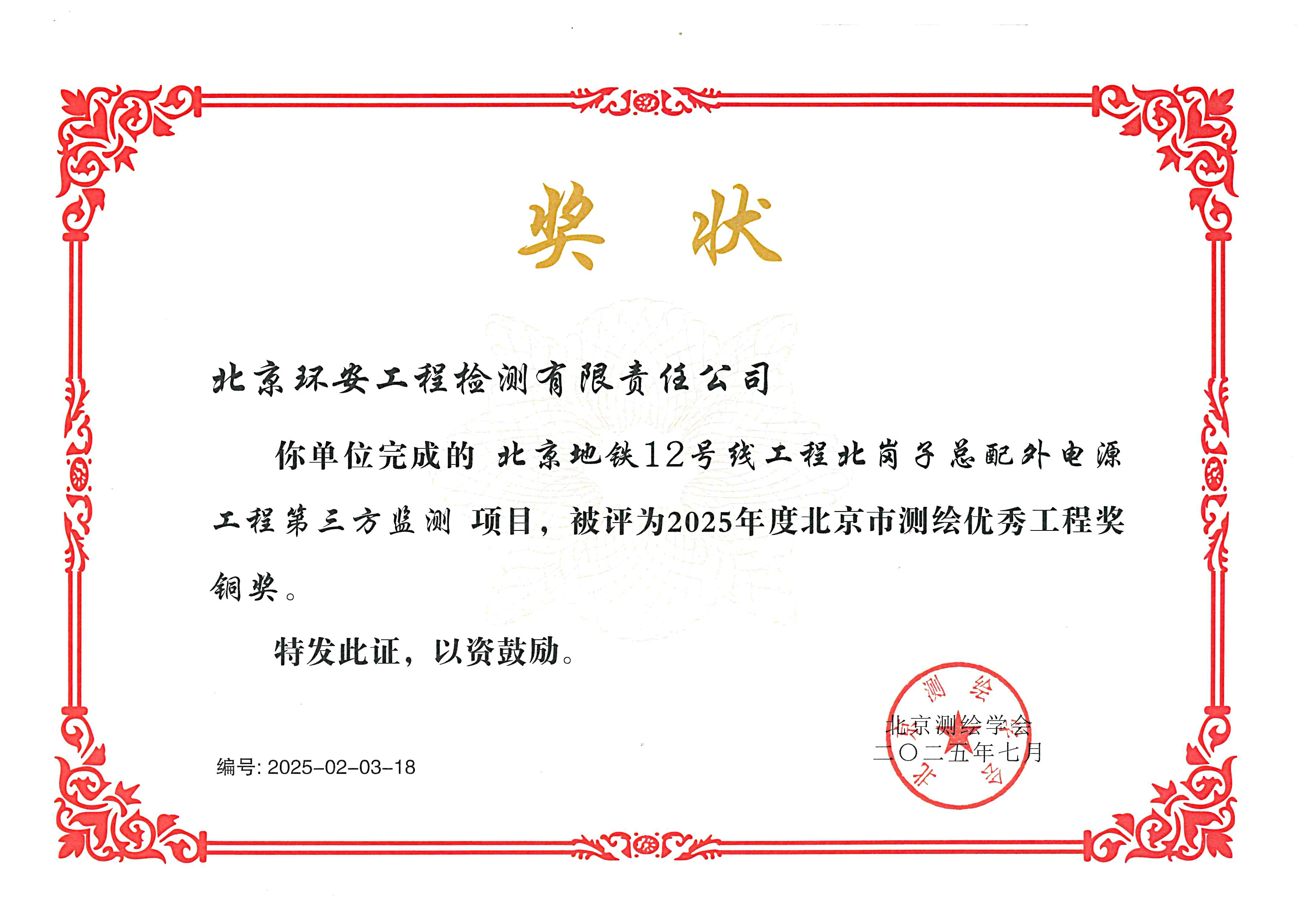 北京环安获得2025年北京市测绘行业工程测绘铜奖